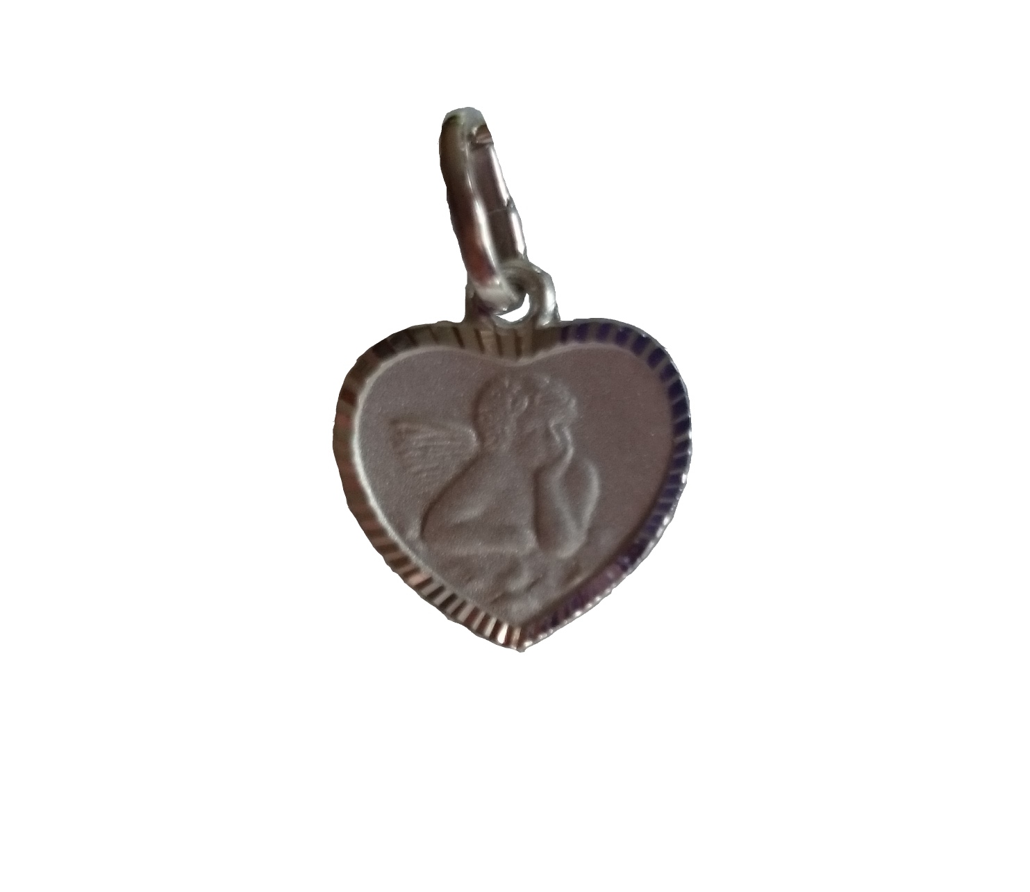 Dieser zierliche Herzchen-Anhänger hat auf der Vorderseite ein Engelchen eingraviert, umrahmt