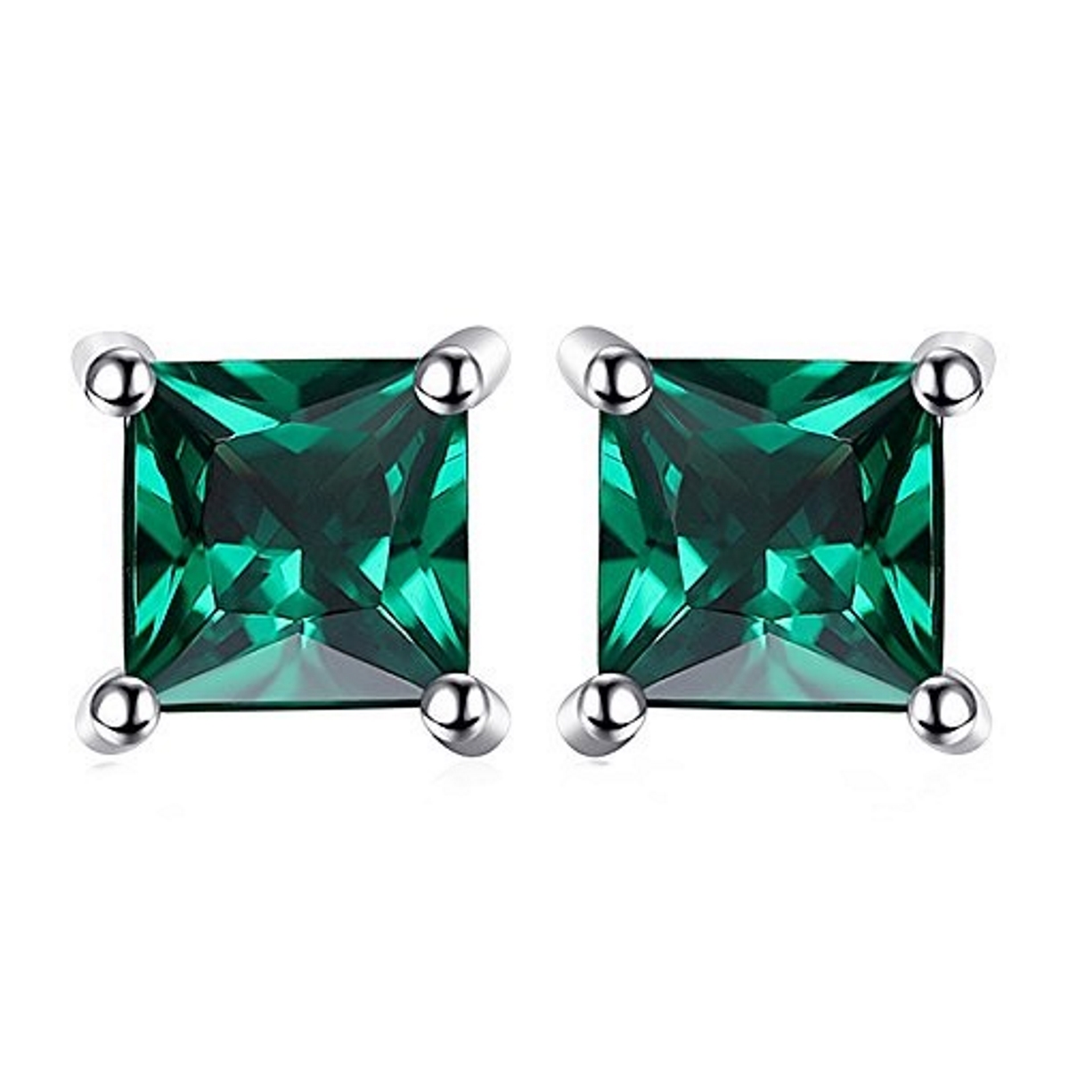 Ohrringe/Ohrstecker Grüne Zirkonia-Square-Quadrat -925 Silber-Rhodiniert 3,00 Karat