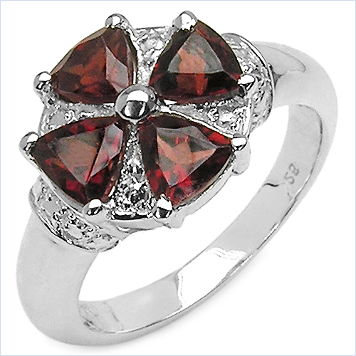 Edler Ring 925 Sterling Silber - Rhodiniert 4 Granate 2,00 Karat