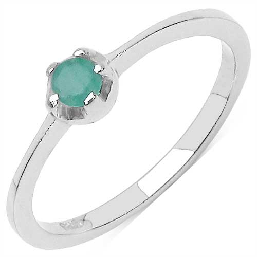 Feiner Smaragd - Ring - 925 Sterling Silber - Rhodiniert in 0,10 Karat