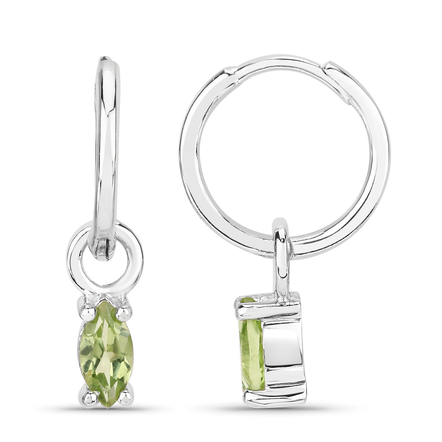 Ohrstecker/Creolen mit Klappscharnier und Peridot - 925 Sterling Silber - Rhodiniert 0,60 Karat