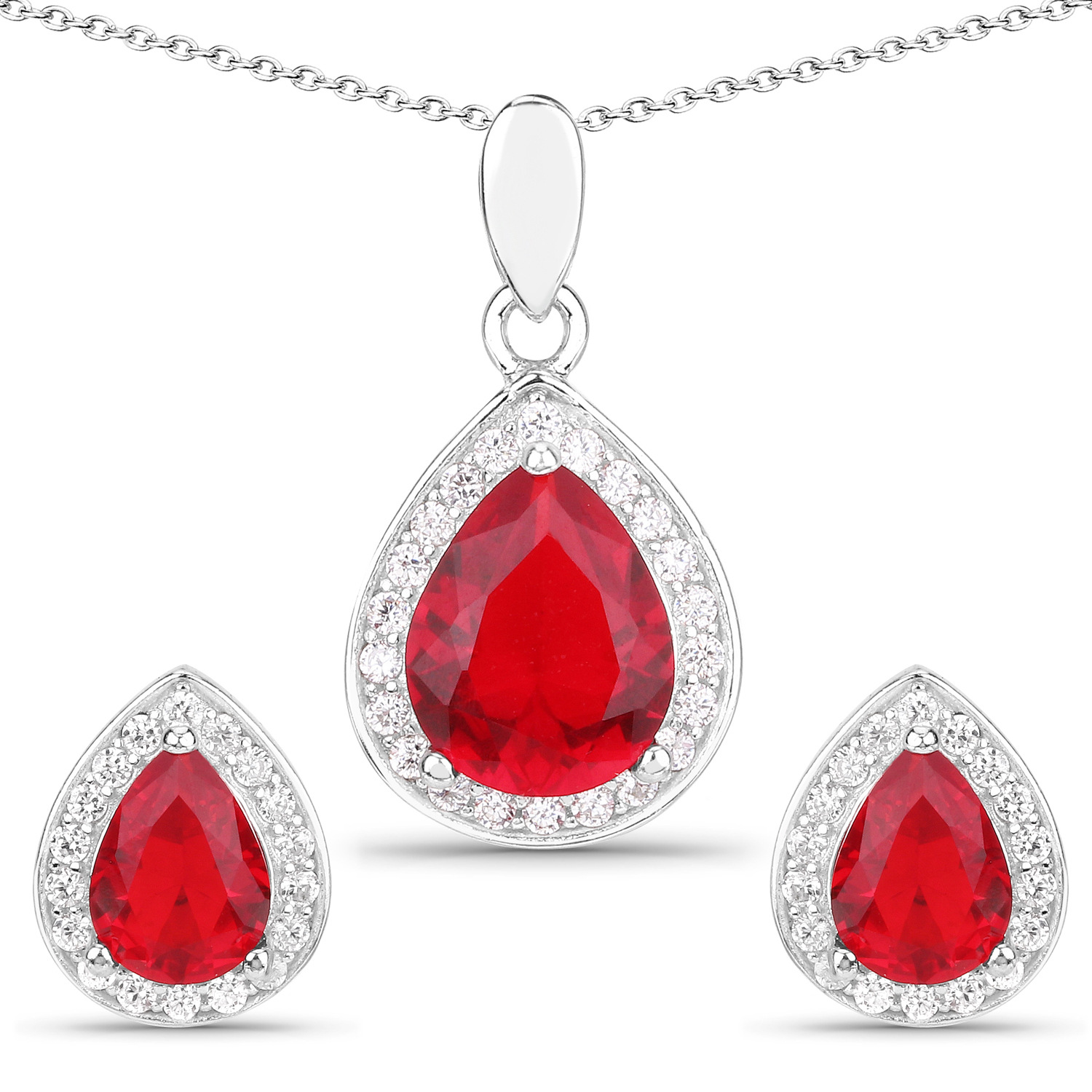 Schmuck-SET Zirkonia rot/weiß-Collier,Anhänger,Ohrringe 63 Zirkonia-Sterling Silber Rhodiniert