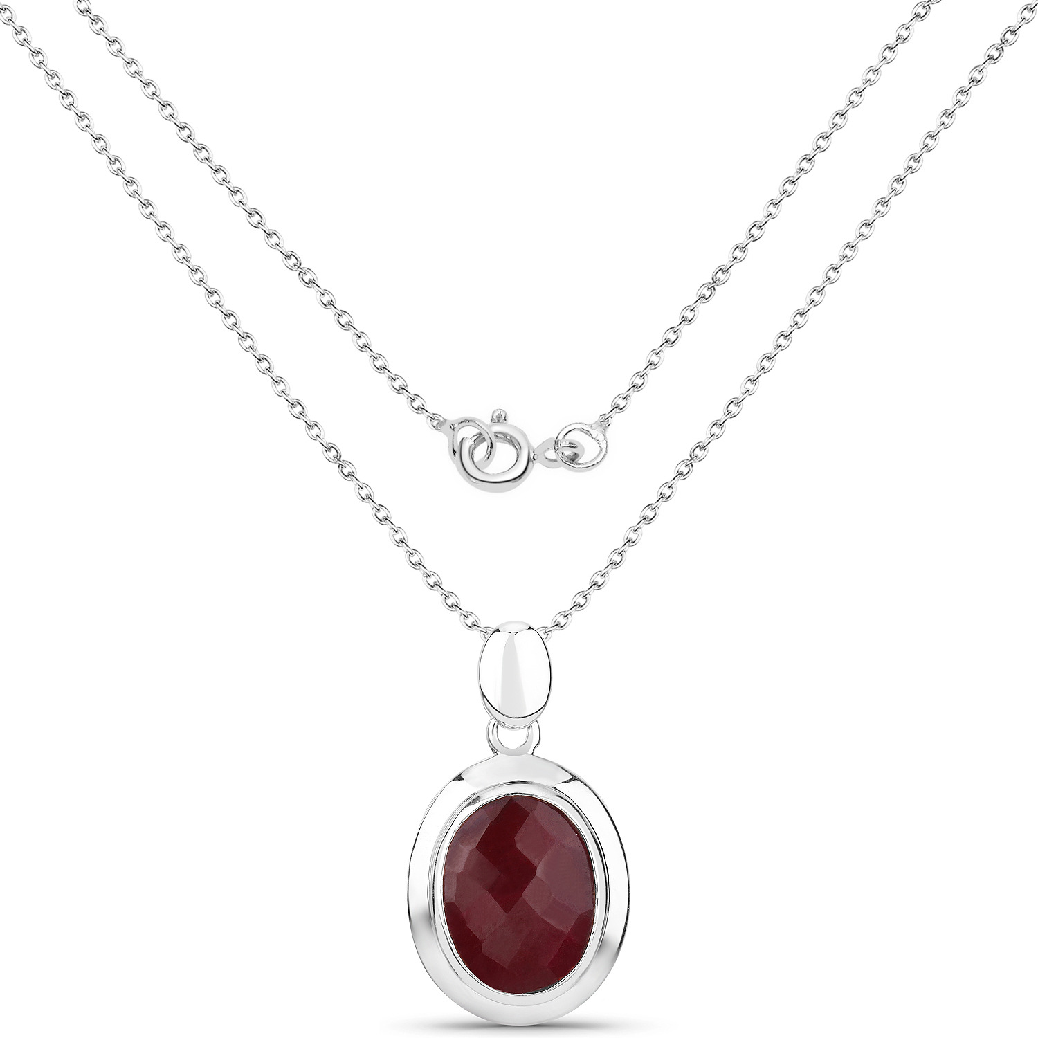 Collier/Kette-Anhänger echter ovaler Rubin-9,86 Karat - Medaillon-Optik in 925 Sterling Silber Rhodiniert