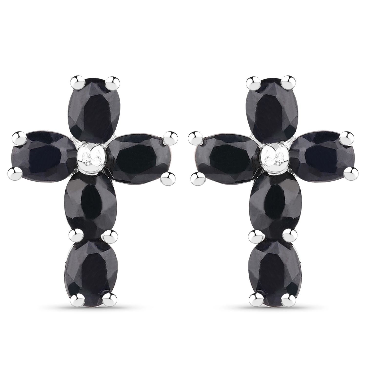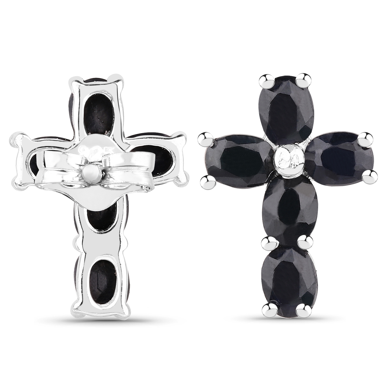 Ohrringe/Ohrstecker-echte Black Saphir-Kreuze, Silber-Rhodiniert 3,00 Karat