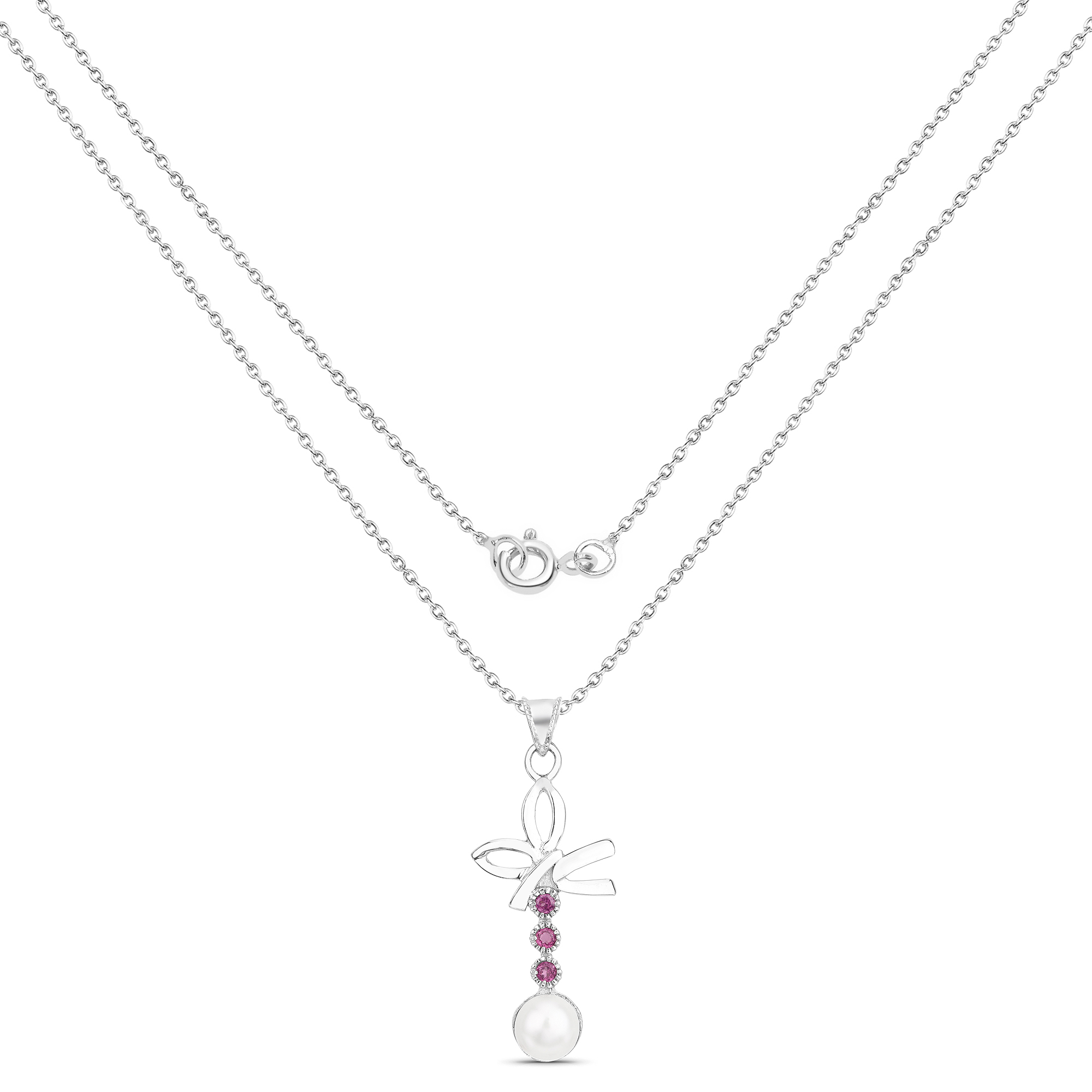 Edler Süßwasser-Perle/Rhodolith-Anhänger mit Collier-Silber-Rhodiniert-4,09Karat