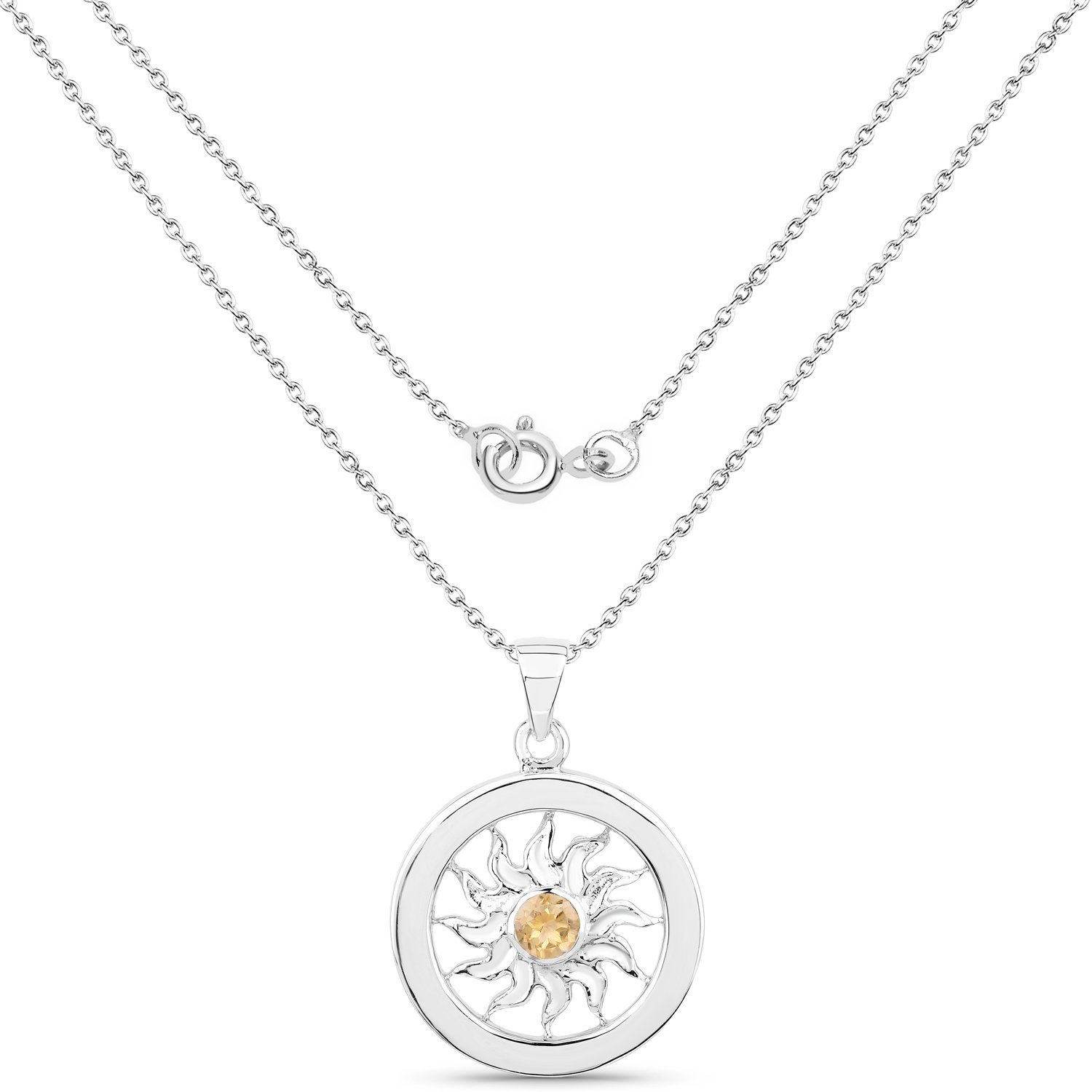 Collier/Halskette 925-Sterling Silber mit Sonne-Anhänger mit gelben Citrin- 1,10 Karat