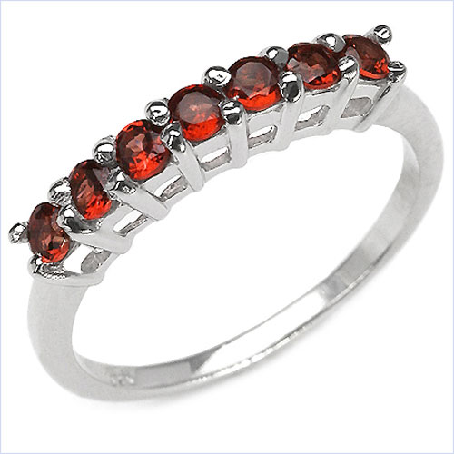 Verführerischer Granat Ring - 925 Sterling Silber - Rhodiniert - mit 7 Granatsteinen 0,48 Karat
