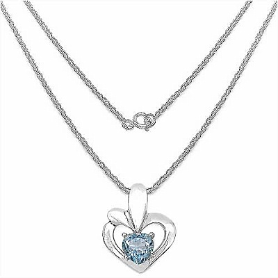 Silber Collier/Kette mit Blue Topas - Herz Anhänger - 925 Sterling Silber-Rhodiniert 1,25 Karat