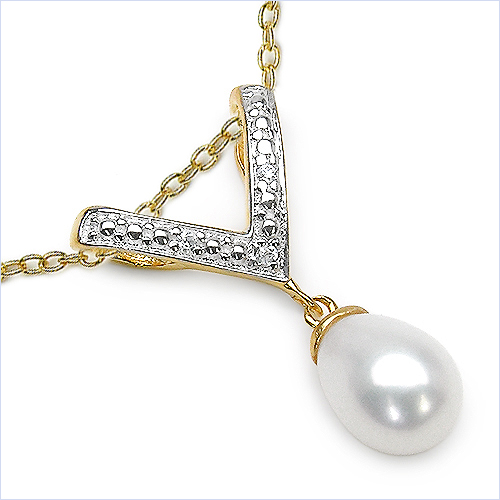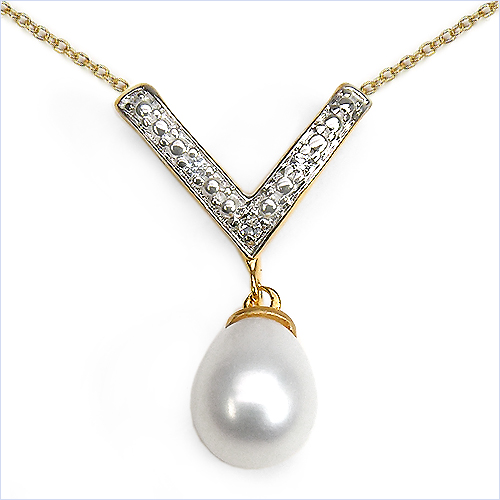 Perle / Zirkonia - Anhänger aus 925 Sterling Silber- Vergoldet in 10 Karat.
