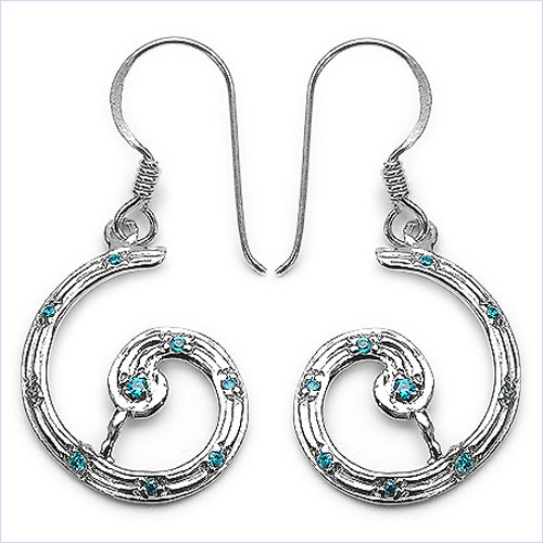 In diesen aussergewöhnlichen Ohrringen/ Ohrhaken wurden je 9 blaue Zirkonias perfekt eingefasst.