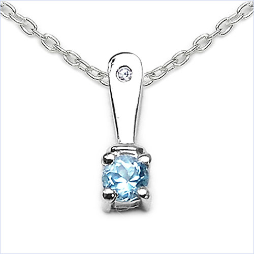In diesem chic`en Collier mit Anhänger wurde 1 Blautopas und 1 American Diamond (Zirkonia) perfekt