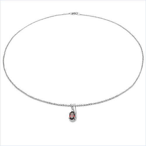 Silber Collier/Kette mit ovalen Granat u. weißem Diamant Anhänger-925 Sterling Silber-Rhodiniert-0,66 Karat
