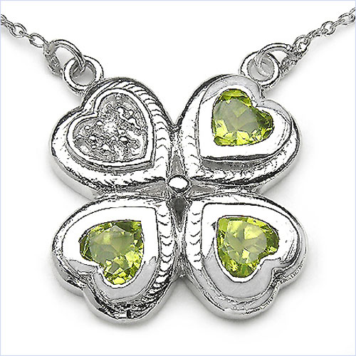 In diesem aussergewöhnlichen Kleeblatt - Anhänger wurden 3 herzförmig geschliffene Peridots und