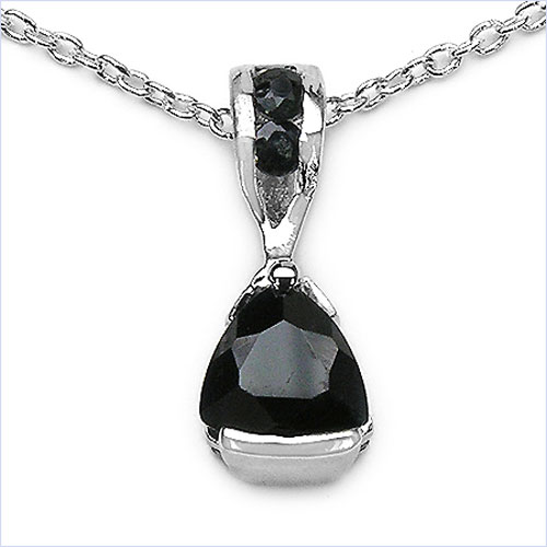 Collier/ Halskette mit Black Saphir - Anhänger - 925 Sterling Silber-Rhodiniert 0,90 Karat