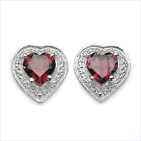 Ohrstecker Herz 925 Sterling Silber - Rhodiniert - mit Granatsteinen in 1,60 Karat
