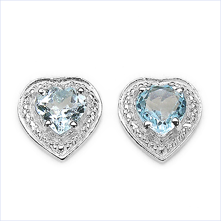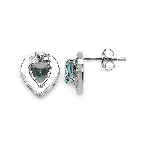 Ohrstecker Herz 925 Sterling Silber - Rhodiniert - mit Blautopas in 1,60 Karat