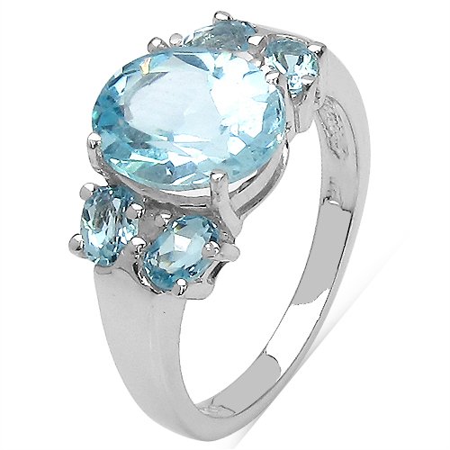 Strahlender Diamant / Blue Topas- Ring - 925 Sterling Silber-Rhodiniert - 4,28 Karat