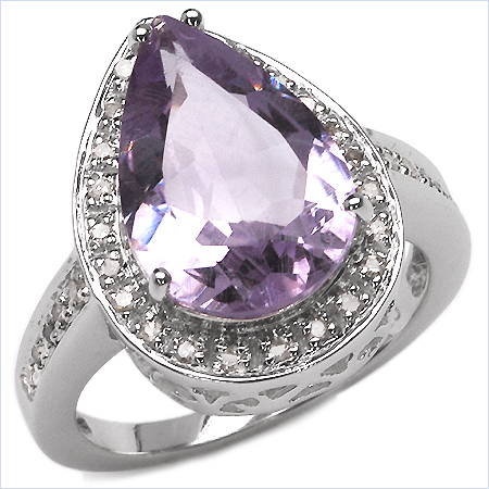 Königlicher - Diamant - Amethyst - Ring - mit 33 Diamanten und 1 15x10 mm großen Amethyst in Tropfenform - 925 Sterling Silber - Rhodiniert in 3,80 Karat