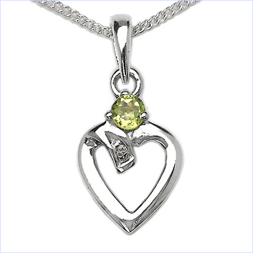 Collier mit Diamant/ Peridot - HERZ - Anhänger-925 Sterling Silber - Rhodiniert