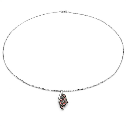 In diesem bezaubernden Collier mit Edelsteinanhänger wurden gleich 8 Granate in verschiedenen Schliffen