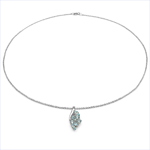 Collier/Kette m.Blautopas-Blumen-Anhänger-925Silber Rh.-1,25 Karat