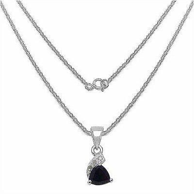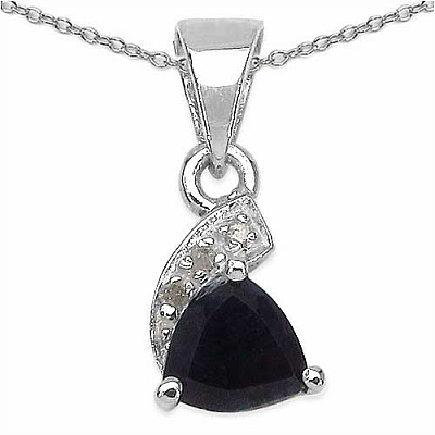 Collier mit Diamant/ Black Saphir - Anhänger - 925 Sterling Silber - Rhodiniert 0,54 Karat