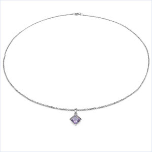 In diesem chic`en Collier mit Anhänger in Quadratform wurde ein 7 mm großer Amethyst perfekt eingefasst.