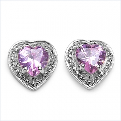 Ohrstecker Herz 925 Sterling Silber - Rhodiniert - mit Pink Zirkonia in 1,70 Karat