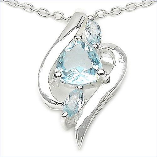 Collier/Halskette mit Blautopas - Anhänger - 925 Sterling Silber-Rhodiniert 1,04 Karat