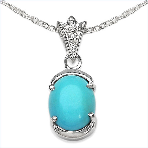 Collier/Halskette 925-Sterling Silber mit Türkis - Zirkonia - Anhänger - 2,57 Karat
