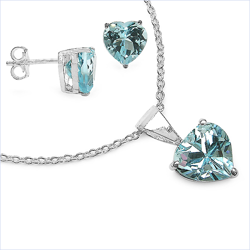 Herzen Schmuck - SET, 4 - teilig Blautopas Edelsteine 6,66 Karat - 925 Sterling Silber - Rhodiniert