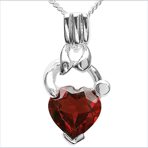 Collier/Kette Herz-Anhänger Granat-Silber/Rhod.-2,00 Karat