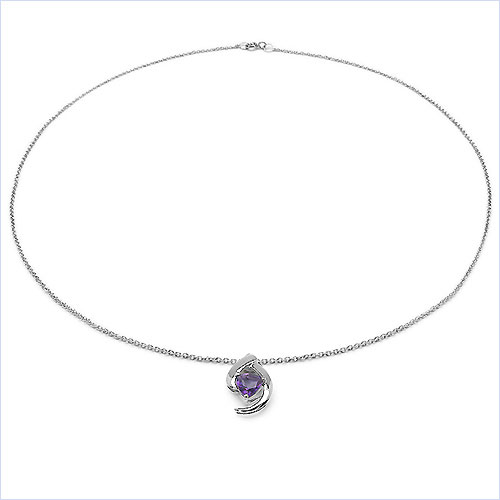 Collier/Halskette mit Amethyst-Anhänger-925 Sterling Silber-Rhodiniert-0,70 Karat