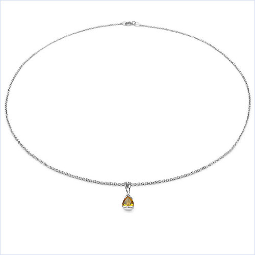 Collier/ Halskette mit Citrin - Anhänger - 925 Sterling Silber-Rhodiniert 0,84 Karat
