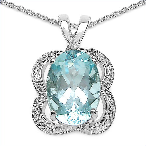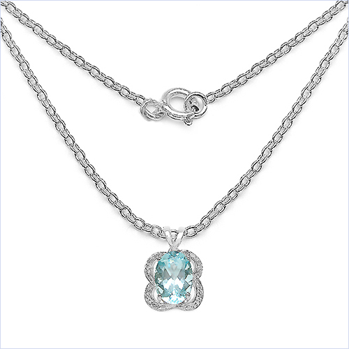 Collier/Kette mit Blautopas / Weißtopas - Anhänger - 925 Sterling Silber - Rhodiniert - 7,52 Karat