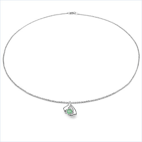 Collier/Halskette mit zierlichem Smaragd (Emerald) - Anhänger - 925 Sterling Silber - Rhodiniert