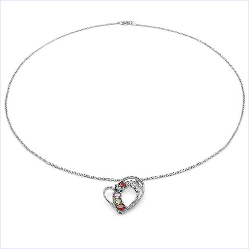 Collier mit Herzen-Anhänger 5 verschiedenen Saphir-Farben in feinstem 925er Sterling Silber Rhodiniert - 1,25 Karat -