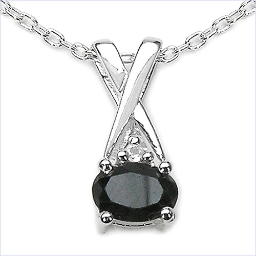 Collier/Kette mit Diamant/Black Saphir-Anhänger 925er Silber Rhodiniert