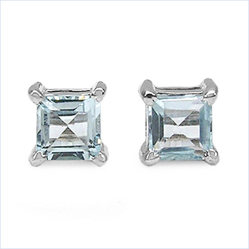 Ohrringe/Ohrstecker Blautopas - 925 Sterling Silber - Rhodiniert - in 1,00 Karat