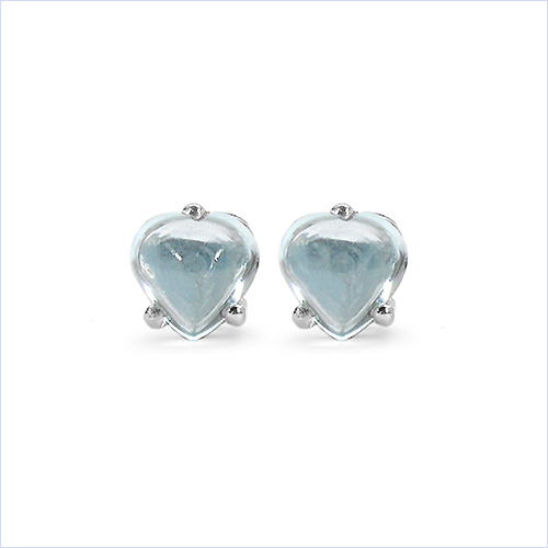 Ohrstecker Blue Topas-Herzschliff (CAB) - 925 Sterling Silber - Rhodiniert in 0,80 Karat