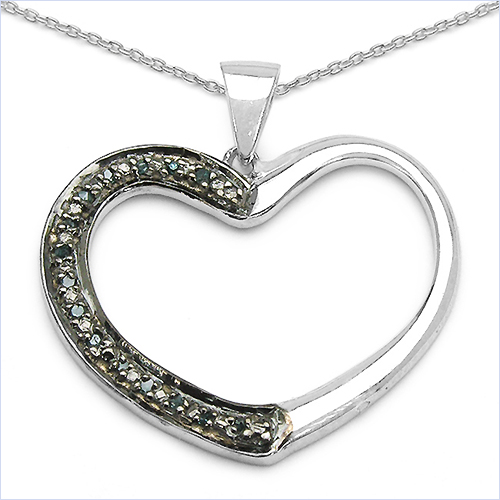 Collier mit großem Herz - Anhänger - 15 seltene blaue Diamanten - in feinstem 925er Sterling Silber Rhodiniert - 0,08 Karat