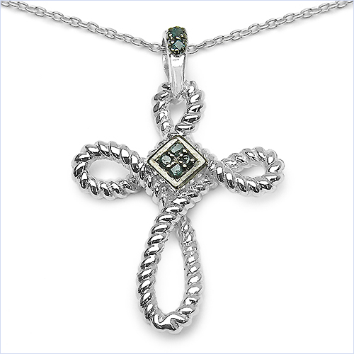 Collier mit Kreuz - Anhänger - 6 seltene blaue Diamanten/Brillianten - in feinstem 925er Sterling Silber Rhodiniert - 0,04 Karat