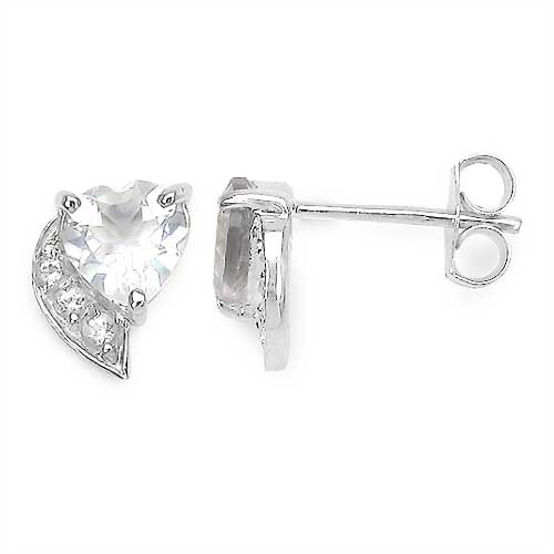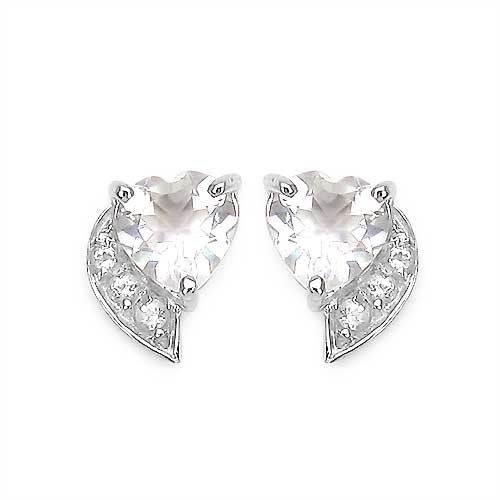 Herzen Ohrringe/Ohrstecker Rosenquarz/Weißtopas - 925 Sterling Silber- Rhodiniert - 1,56 Karat
