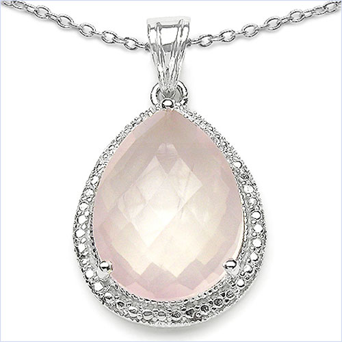Edler Rosenquarz Anhänger - 925 Sterling Silber-Rhodiniert in 12,72 Karat
