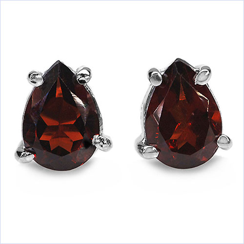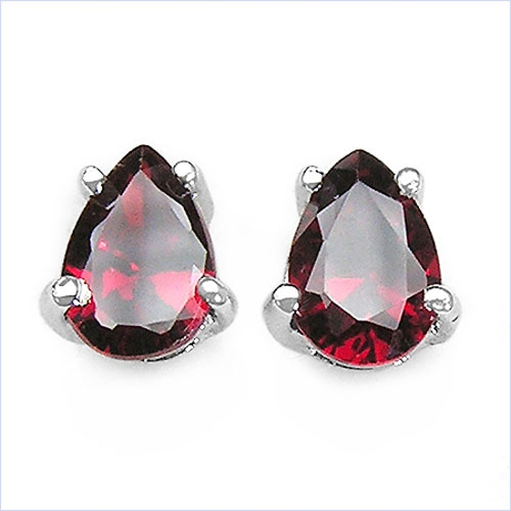 Ohrringe / Ohrstecker Granat in Tropfenform 925 Sterling Silber - Rhodiniert 1,70 Karat